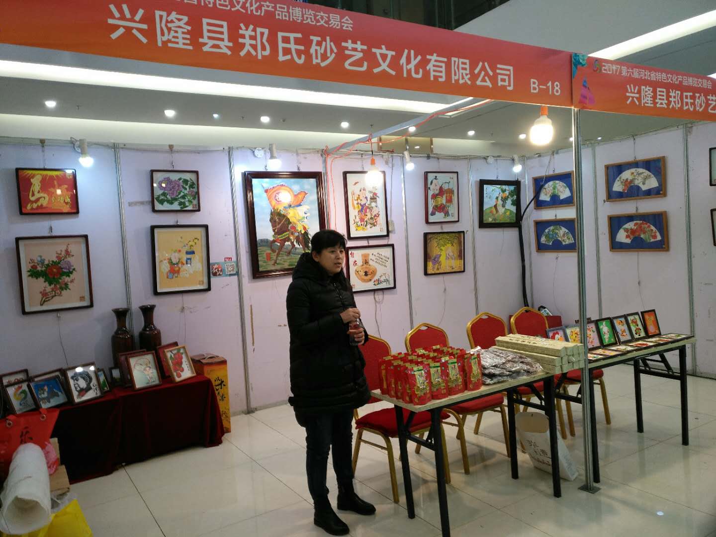 2017河北省第六屆特色文化產(chǎn)品博覽交易會,12月22日至24日在省會石家莊長安區(qū)樂城國際皮革城盛大舉行。鄭鐵軍總經(jīng)理等4人攜帶鄭氏砂藝畫作品參加了此次盛會,這是鄭氏砂藝為省會人民再次奉送的一場文化饕餮大餐。