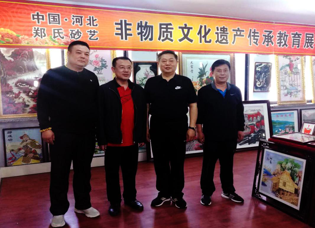 在鄭氏砂藝文化公司非物質(zhì)文化遺產(chǎn)傳承教育展示廳,公司總經(jīng)理鄭鐵軍同志就目前公司的經(jīng)營發(fā)展和今后產(chǎn)業(yè)布局構(gòu)想向李司令員一行作了詳細(xì)介紹,李司令員在詳細(xì)了解了砂畫的歷史文化和制作流程后,對(duì)鄭氏砂藝的文化傳承表示肯定,對(duì)鄭鐵軍總經(jīng)理“繼承祖?zhèn)魉囆g(shù),傳承正能量文化”的精神表示欽佩。鄭鐵軍總經(jīng)理對(duì)李司令的支持和鼓勵(lì)表示衷心的感謝,并表示公司將在保持傳承傳統(tǒng)手工藝的基礎(chǔ)上,繼續(xù)研發(fā)新工藝、新產(chǎn)品,以保障砂畫的藝術(shù)價(jià)值和文化價(jià)值!