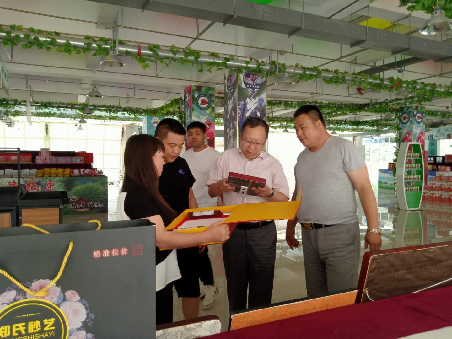 2020年6月22日,興隆縣縣委書記薛青松親臨興隆縣農(nóng)產(chǎn)品展示展銷中心視察指導(dǎo)工作,期間在董事長鄭鐵軍的陪同下參觀了鄭氏砂藝展出的扶貧系列產(chǎn)品,薛青松書記對2019年鄭氏砂藝的扶貧工作進行了深入了解,聽取了董事長鄭鐵軍的扶貧情況匯報,并對鄭氏砂藝非遺文化扶貧工作和扶貧產(chǎn)品給予了高度評價。薛青松書記指出,目前脫貧攻堅是主要任務(wù),要發(fā)揮文化企業(yè)特點,不斷學(xué)習(xí),尋求創(chuàng)新,把“非遺+扶貧+旅游”的新觀念、新思路、新方法投入實踐,促進文旅融合,提高縣文化產(chǎn)業(yè)的可持續(xù)發(fā)展。這樣既可以帶動貧困戶脫貧致富,又能推動非物質(zhì)文化遺產(chǎn)的傳承與發(fā)展。