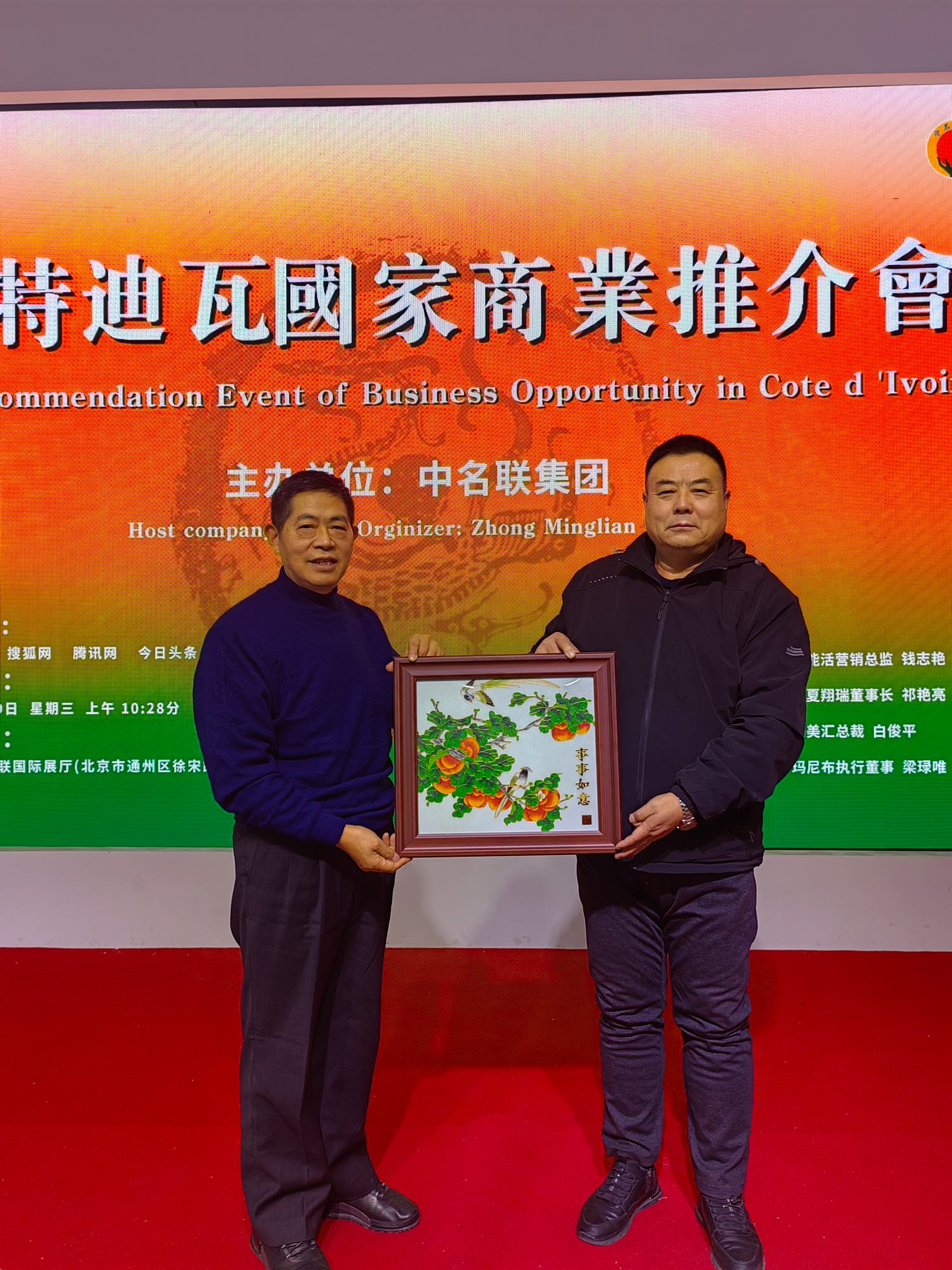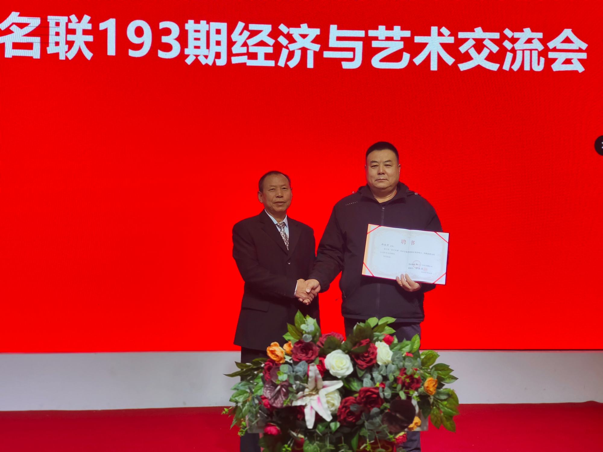 華夏翔瑞(北京)食品有限公司董事長(zhǎng)祁艷亮為鄭鐵軍董事長(zhǎng)頒發(fā)聘書