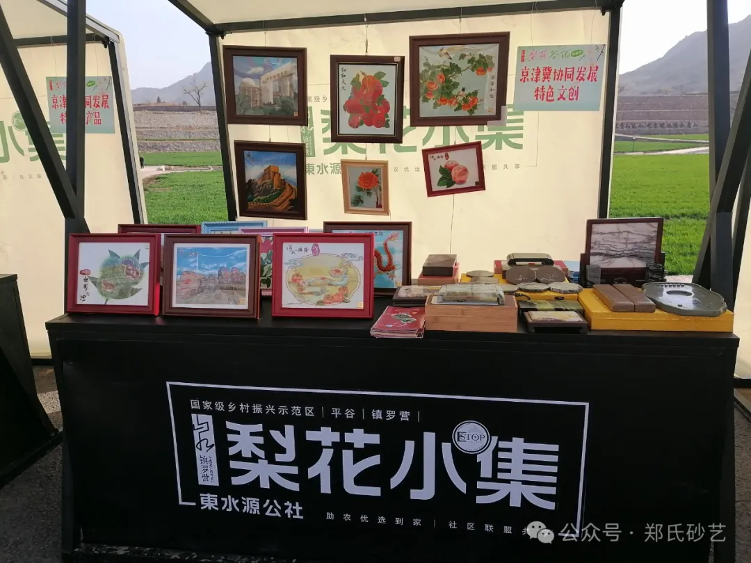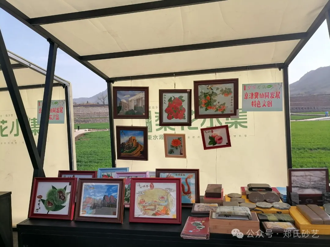 “忽如一夜春風(fēng)來,千樹萬樹梨花開” 春風(fēng)正好,花開有期。2024年4月8日上午,北京市平谷區(qū)鎮(zhèn)羅營鎮(zhèn)人民政府舉辦的以“千載梨花頌、花漾鎮(zhèn)羅營”為主題的梨花谷雨文化節(jié)活動(dòng)拉開帷幕,為營造“傳統(tǒng)文化+梨花美景”的活動(dòng)氛圍,鄭氏砂藝受邀參加了此次活動(dòng),并精心挑選了20余幅精品砂畫參加展出,展出作品涵蓋了紅火(山楂)、吉利(板栗)、平安(蘋果)、天文臺、興隆山風(fēng)光等興隆地區(qū)眾多的特色產(chǎn)品和獨(dú)特景點(diǎn),展出期間,鄭氏砂藝(畫)作品以其材質(zhì)的新穎獨(dú)特,制作手法的精妙絕倫,畫面內(nèi)容的豐富多彩,吸引了眾多游客駐足觀賞,成為了自媒體和游客的拍攝打卡地。鄭氏砂藝用自己的藝術(shù)方式充分地向北京人們展示了興隆的文化特色,同時(shí)為平谷“梨花節(jié)”增添了濃厚的文化氣息。