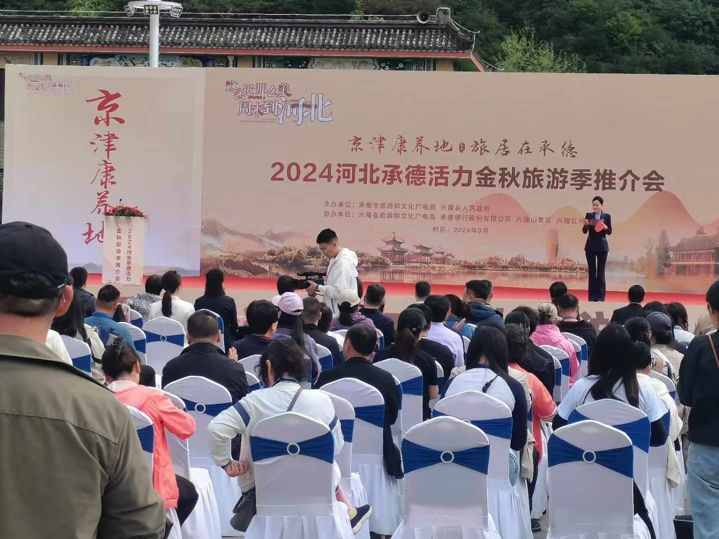 2024年9月25日上午,由承德市旅游和文化廣電局、興隆縣人民政府主辦的“京津康養(yǎng)地 旅居在承德”2024活力金秋旅游季推介活動,在興隆縣興隆山景區(qū)山門廣場隆重開幕,此次活動意在叫響承德秋季旅游品牌,推動承德市旅游業(yè)高質(zhì)量發(fā)展。活動邀請了京津冀遼蒙的大型旅行社代表,友鄰城市文旅部門領(lǐng)導(dǎo),國家、省、市主流媒體和自媒體,承德市委、市政府領(lǐng)導(dǎo),市農(nóng)業(yè)農(nóng)村局、市體育局、市文物局、市文聯(lián)、市總工會、避暑山莊旅游集團(tuán)、市供銷集團(tuán)相關(guān)負(fù)責(zé)同志,各縣(市、區(qū))政府分管負(fù)責(zé)同志、旅游和文化部門主要負(fù)責(zé)同志,重點文旅企業(yè)、市攝影家協(xié)會、河北省自駕游與露營房車協(xié)會承德分會等多家單位。