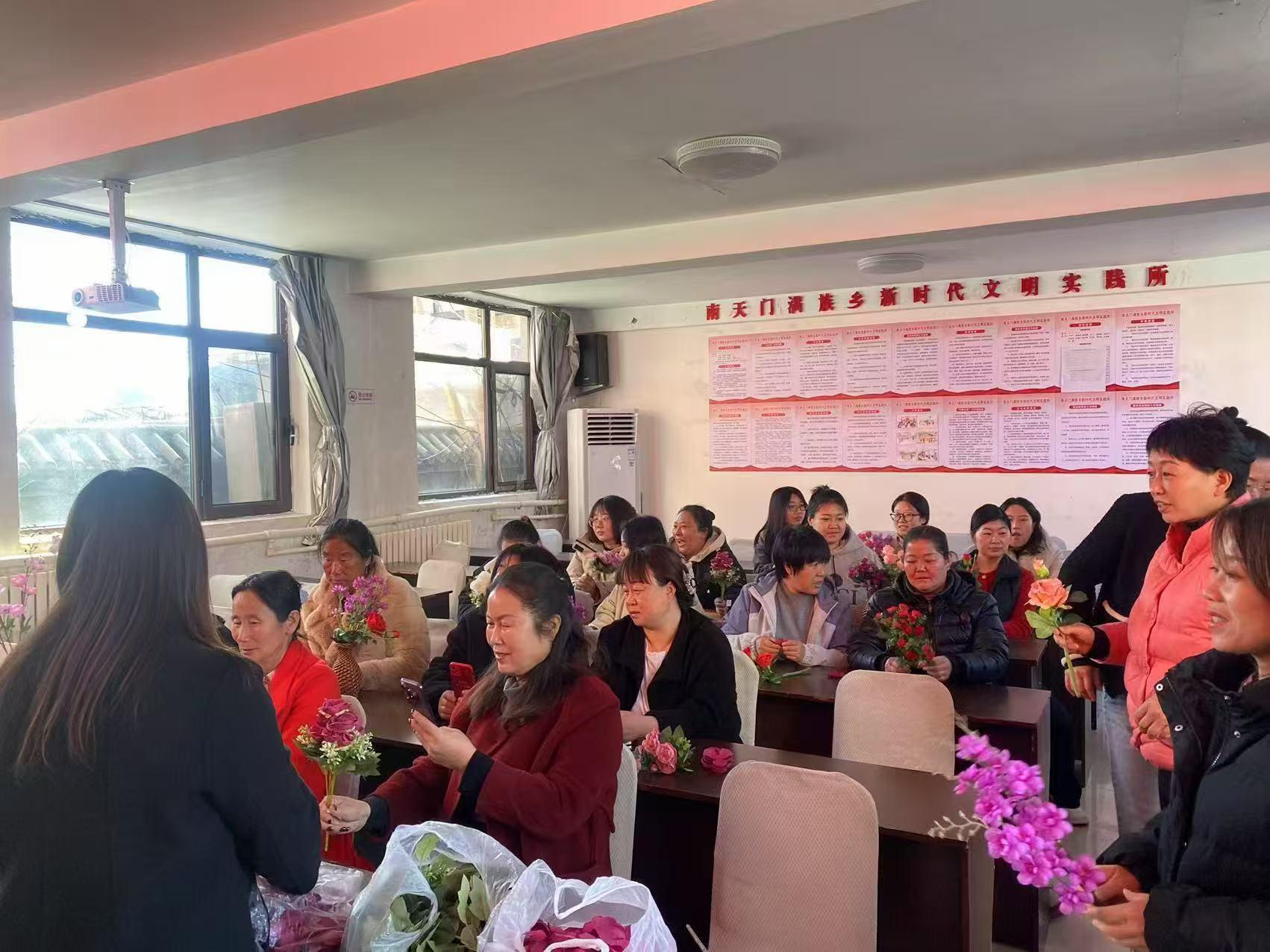 2025年3月6日,由南天門滿族鄉(xiāng)人民政府主辦,鄭氏砂藝承辦的“巧手筑花藝 巾幗綻芳華”慶“三八”插花體驗活動在南天門鄉(xiāng)政府圓滿結束,吸引了30余名南天門鄉(xiāng)農村女性的積極參與。此次活動通過絹花制作體驗,生動展示了傳統(tǒng)工藝在鄉(xiāng)村振興中的積極作用,為鄉(xiāng)村發(fā)展注入了新的活力。