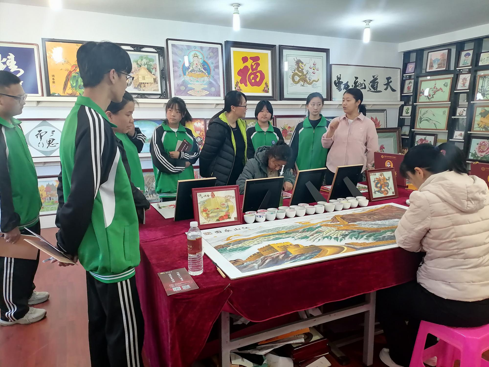 為了更好地向師生們展示砂藝技藝,鄭氏砂藝精心準(zhǔn)備了砂藝制作展演,多位砂藝技師分步展演砂藝制作過程,并由河北省勞動模范、非遺傳承技師王鳳艷詳述掐絲勾線、礦物彩砂分層填充等核心工藝要領(lǐng)。學(xué)生通過全程觀摩砂畫制作工藝流程,切實領(lǐng)悟"毫厘之間見真章"的工匠精神內(nèi)涵。當(dāng)流光溢彩的礦物砂粒與金銀絲線在技師手中逐漸形成美麗的畫面時,展廳內(nèi)頻現(xiàn)此起彼伏的驚嘆聲。師生們對砂藝作品呈現(xiàn)的現(xiàn)實感染力深感震撼,坦言線上了解遠不及實地體驗深刻。帶隊教師劉贏總結(jié)表示:"鄭氏砂藝在非遺傳承中的堅守與創(chuàng)新值得學(xué)習(xí),鼓勵大家傳承技師們精益求精的工匠精神,腳踏實地踐行人生目標(biāo)。"