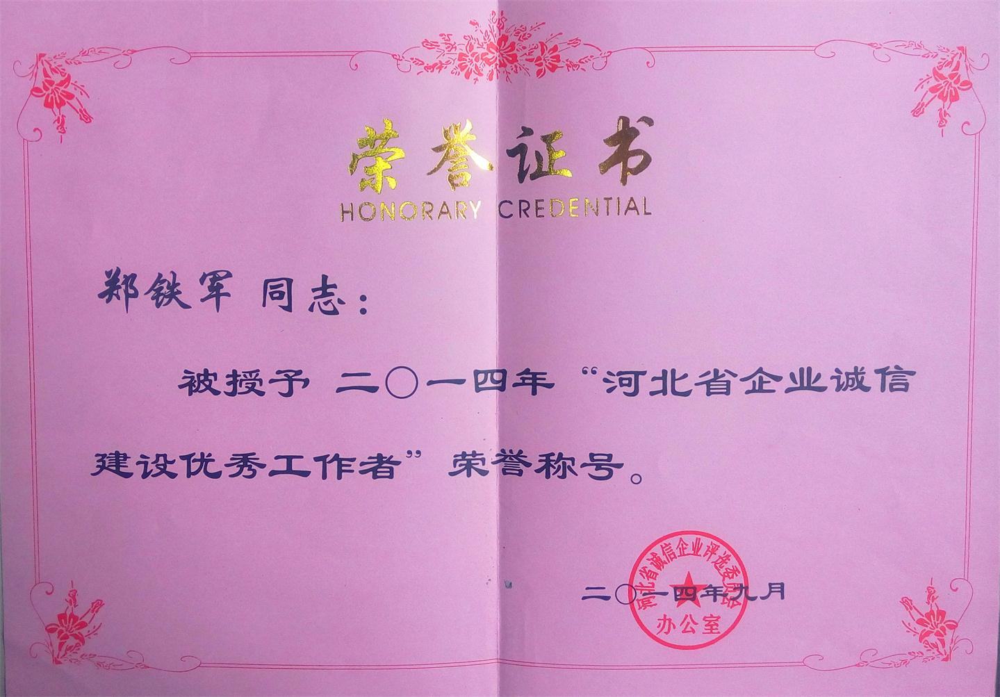 9月26日,河北省誠信企業(yè)評(píng)選委員會(huì)辦公室和河北省企業(yè)家協(xié)會(huì)同省有關(guān)部門通報(bào)表彰“河北省誠信企業(yè)”及“河北省企業(yè)誠信建設(shè)優(yōu)秀工作者”。興隆縣鄭氏砂藝有限公司榮獲“河北省誠信企業(yè)”榮譽(yù)稱號(hào);公司總經(jīng)理鄭鐵軍被授予“河北省誠信企業(yè)建設(shè)優(yōu)秀工作者”榮譽(yù)稱號(hào)。“河北省誠信企業(yè)”及“河北省企業(yè)誠信建設(shè)優(yōu)秀工作者”評(píng)選活動(dòng)每?jī)赡杲M織開展一次。2014年,經(jīng)過公司申報(bào)、基層相關(guān)部門審查推薦、省相關(guān)主管部門復(fù)審、評(píng)審專家委員會(huì)審核評(píng)選、社會(huì)公示等程序獲此稱號(hào)。這是公司首次獲此殊榮。