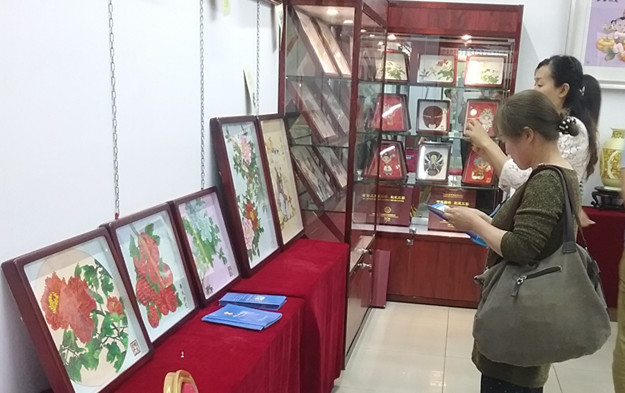 鄭氏砂畫的獨(dú)特工藝吸引了無數(shù)參觀者的目光。