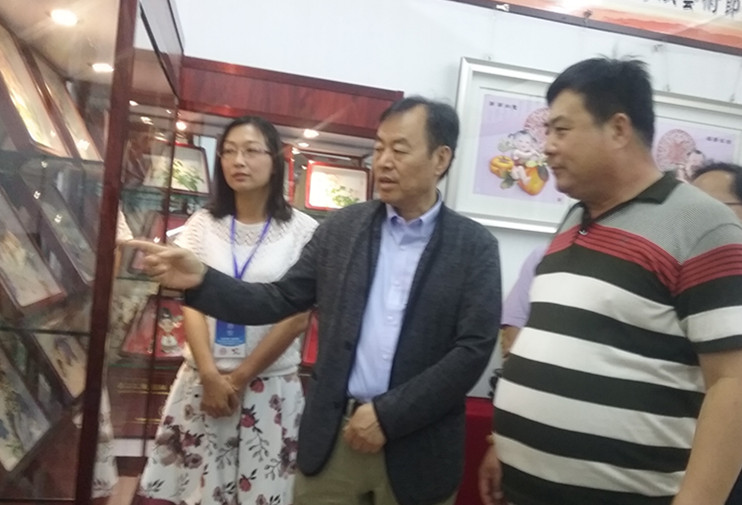 河北省文化廳書記:王離湘、河北省非遺文化中心主任毛硯(女)來到展位參觀指導(dǎo)